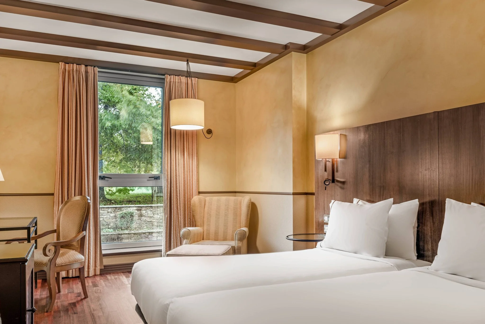 Our Santiago Hotel features tailored services to tend to all your needs ensuring you have a unique experience. AC Lounge, gardens, outdoor terrace, minibar and plasma TV. Our Indoor swimming pool, fitness center and contemporary restaurant El Camelio provide multiple options to unwind after a days sightseeing. This Santiago de Compostela hotel helps our guests plan the perfect social or business event in one of our fully equipped rooms. Free WiFi access throughout the hotel so guests can connect to the internet whenever they want.