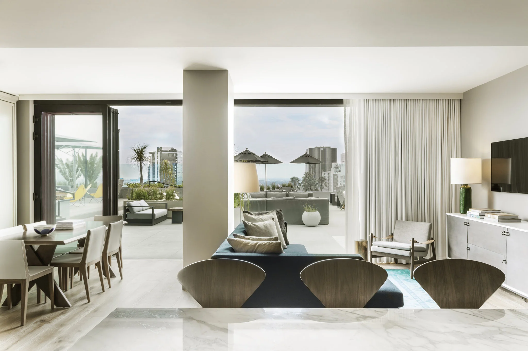 Our hotel features 216 guestrooms and 12 suites that boast a discreet tropical feel paired with sophisticated visions of modern L.A.
